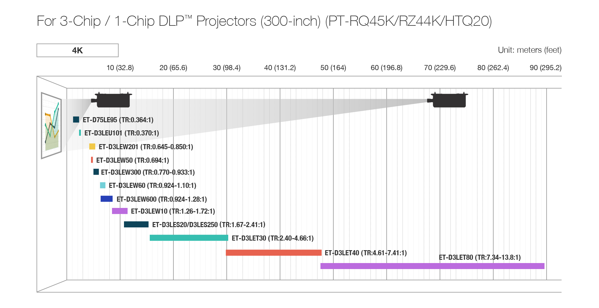 Throw-Distance Calculator is a convenient way to estimate throw distance for any screen size using any lens-detachable Panasonic projector and compatible optional lens.